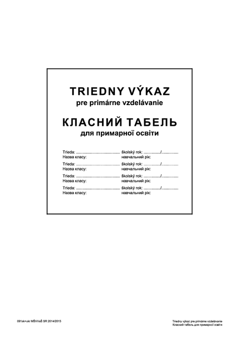 | 091sk+ukr | Triedny výkaz pre primárne vzdelávanie | |||